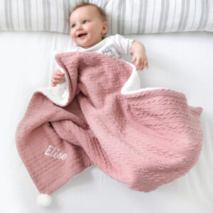 A Type Of Design Personalised Dusty Pink Cable Knit Pom Pom Blanket