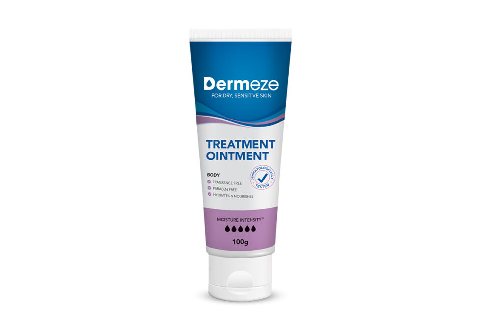 Dermeze Treatment Ointment is thick, rich and highly occlusive. Originally developed for babies’ skin, the ointment contains just 2 ingredients and no preservatives, making it less likely to sting or cause irritation.