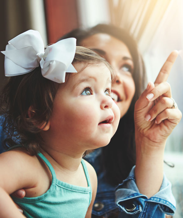 Point to objects: Pointing to an object you're referring to, or holding it up to show her while you're talking about it, can help her learn its name.