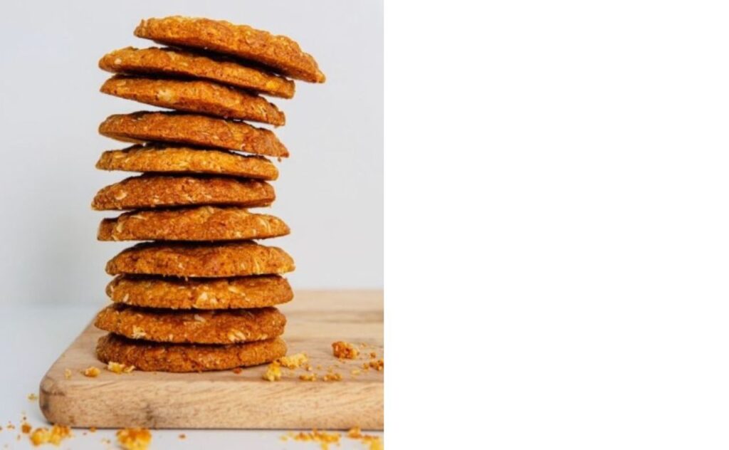 - Add a pinch of sea salt flakes before baking to counter the sweetness in the Anzac biscuit and the flavour of the oats.