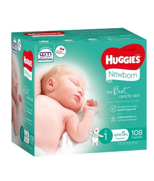 The numbers from Huggies below shows by size an estimate of how many nappies will be required per week. Newborns need significantly more nappies in those first weeks and some babies can grow quite quickly, so you don’t want to stock up on too many Size 1 as before too long your bub will be into a Size 2.