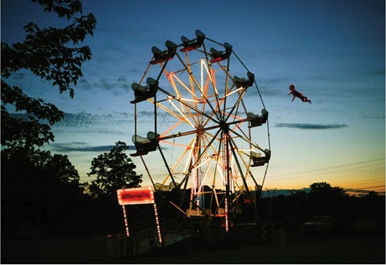 Photographer Rachel Hulin enlisted the help of her baby son Henry to create a series of fantasy pics. In this photo, Henry shows just how high he can soar when passing a Ferris wheel.