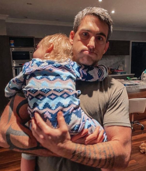 Judging by the look on Declan’s face he can’t believe the grand entrance his baby boy just made. Declan is cuddling his and Emily’s two-year-old daughter, Mia.