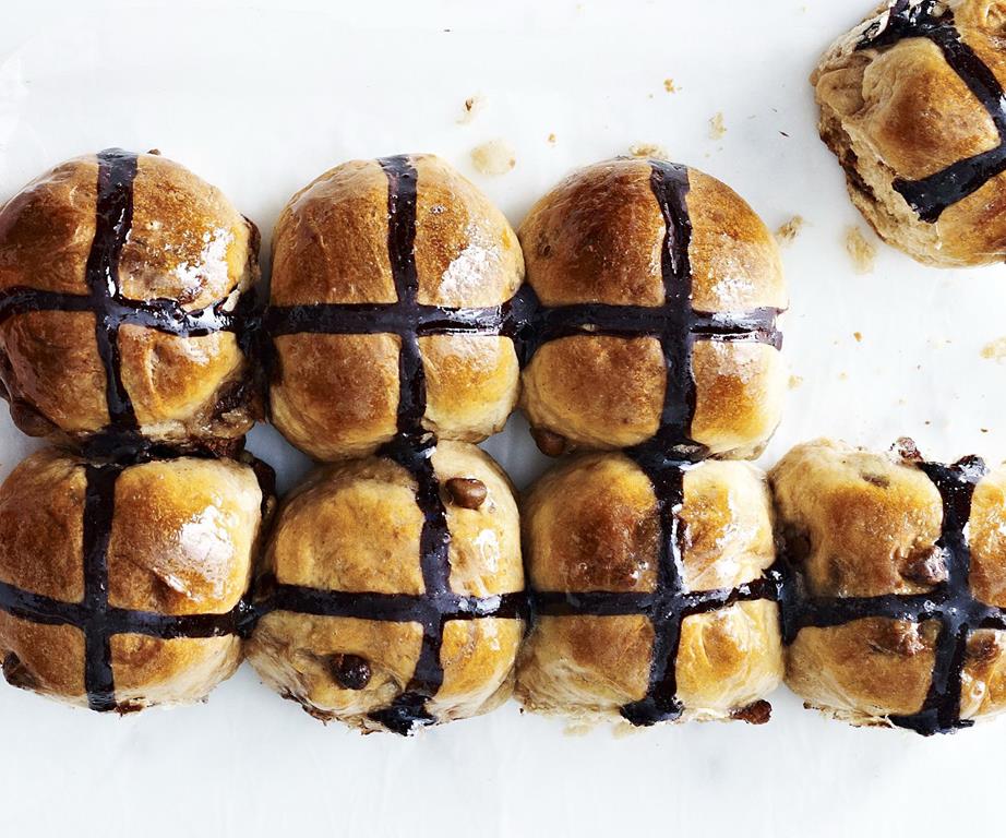 Best ever choc-chip hot cross buns