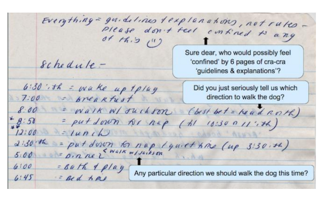 Remember the list of instructions you wrote first time you left someone looking after your child?