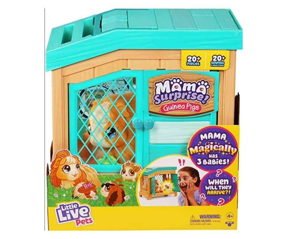 Little Live Pets – Mama Surprise; Soft, Interactive Mama Guinea Pig and her Hutch, and her 3 Surprise Babies, $90