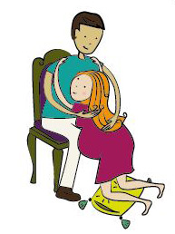 Also known as the supported squat, your partner sits on the edge of the bed or a chair with you squatting in front, your back to him. Keep your legs open and feet flat on the floor. They can place their arms under yours so each time a contraction comes they can support your body as it hangs in position until the pain fades. Then you can rest against his lap.