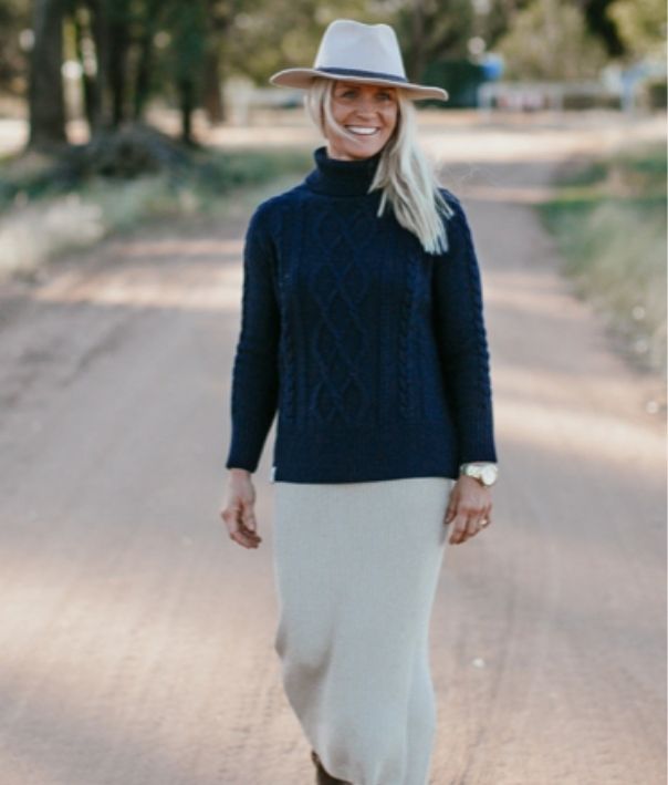 Lady Kate Cable Knit Roll Neck Jumper in Navy, RRP $320
