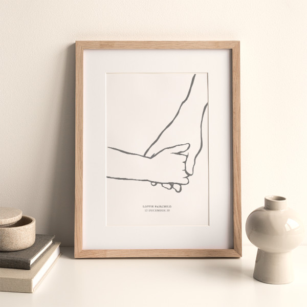 You can personalise the text at the bottom of the print with your words, whether a signature, such as ‘Emily & Mummy May 2020’ or with a phrase such as ‘You will hold my hand for a while but my heart forever’.