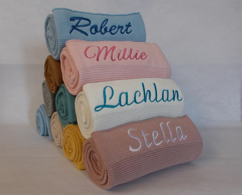 Personalised knitted baby blanket, starting from $40.95, BabyFirstYears