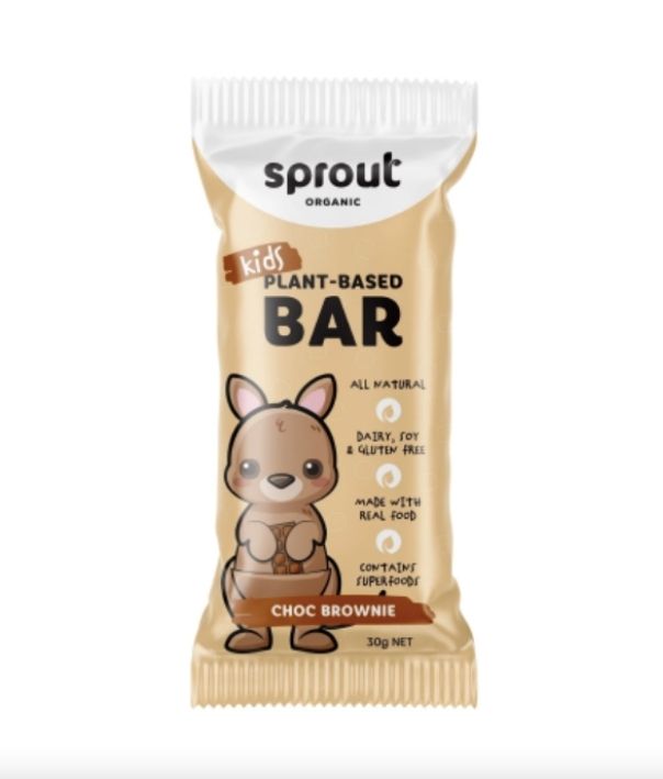 This product gives us the best of both worlds, cute packaging and real food ingredients: Sprout Organic Chocolate Brownie Kids Bar 30g