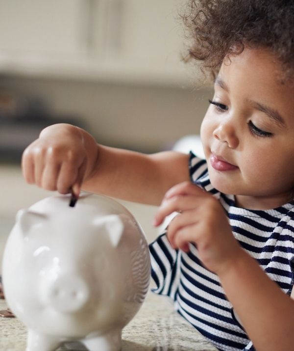 A selection of piggy banks or ‘funds’ for different wants can help kids learn how to save from an early age.