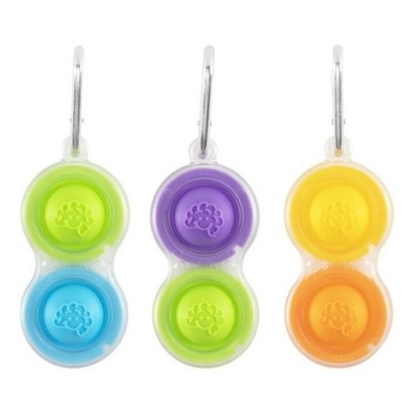 This textured fidget toy has its own carabiner so it can be attached to a bag, belt or strap for easy/discreet access. The silicone buttons provide a tactile stimulation that promotes calm and concentration.