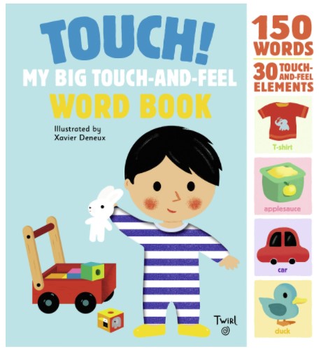 This fun book is a multi-sensory experience that features 150 words to learn. There are 30 touch-and-feel elements that help kids establish a link between textures (rough, smooth, soft) and words.