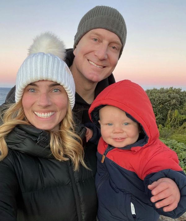 Simon Pryce and Lauren Hannaford with their one-year-old son, Asher.