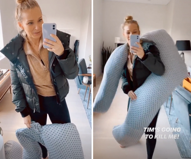 While she joked that “Tim won’t be happy,” it’s clear that her doting Neighbours star husband is so over the moon with his upcoming role as a dad that he probably won’t mind sharing the bed with the world’s largest pillow.