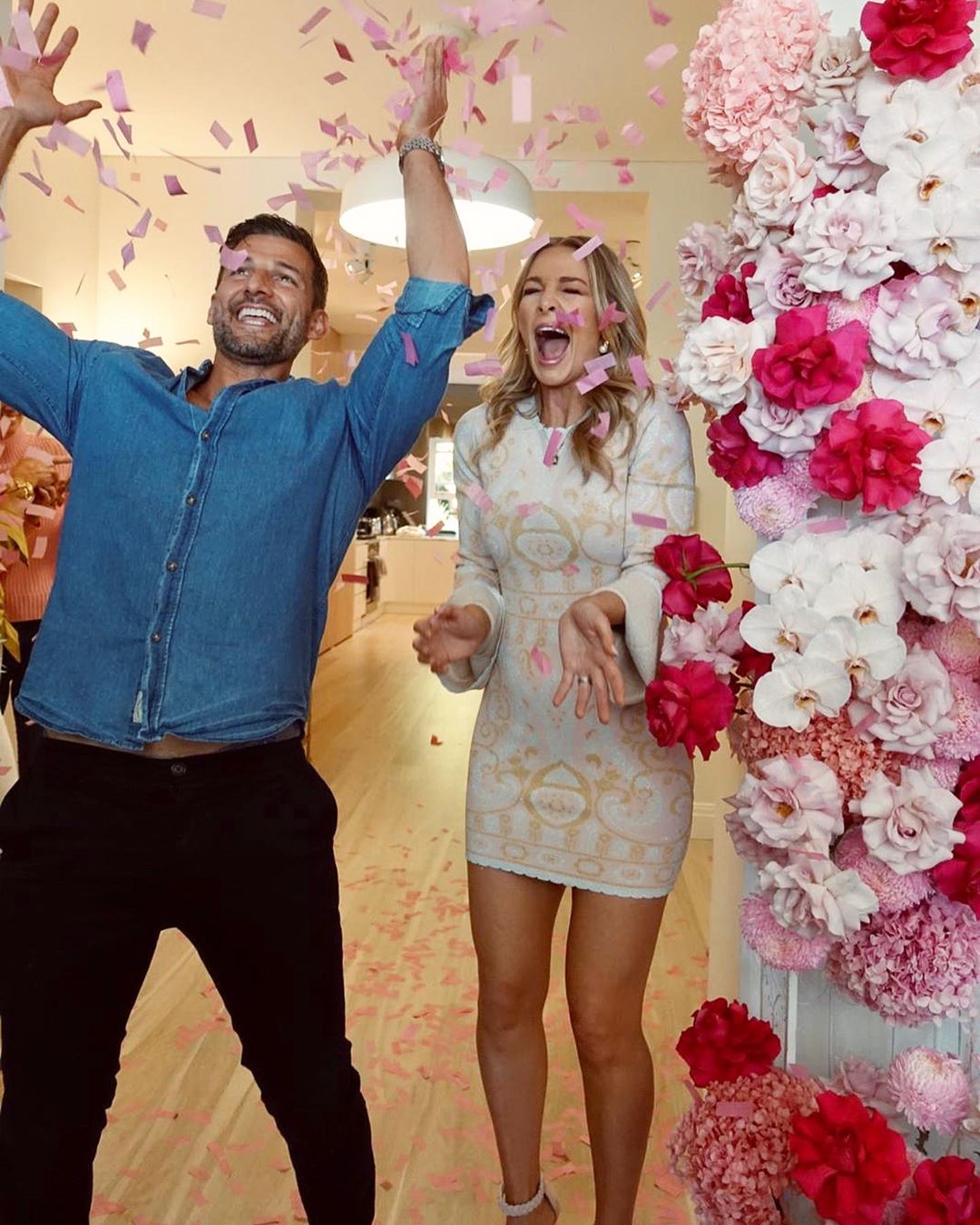 When the explosion of pink confetti rained down from above, it was clear the couple would soon be welcoming a daughter.