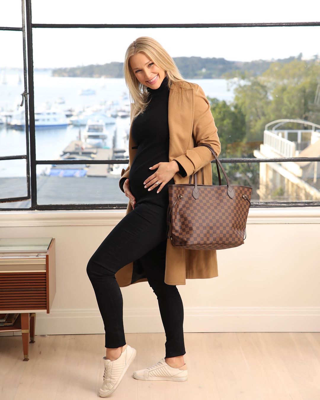 “Mastering (sort of) the pregnant pose” captioned Anna as she posed with a very, very stylish Louis Vuitton baby bag.