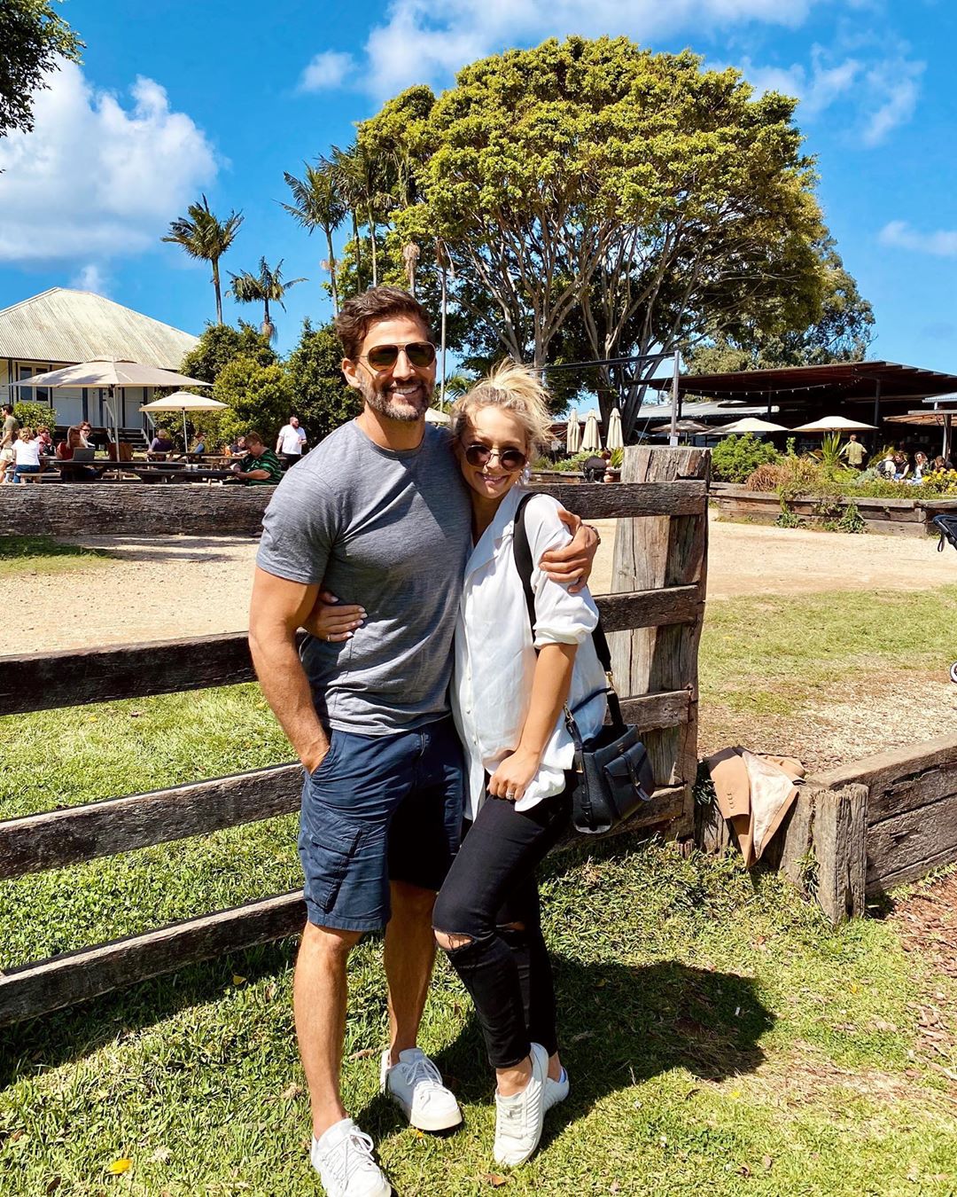 Anna was pure casual glam during a day at The Farm in Byron Bay with Tim, where she rocked an oversized white linen shirt, torn black jeans and her trusty white sneakers, topped off with the perfect messy bun!