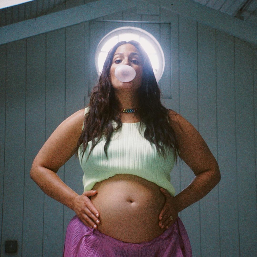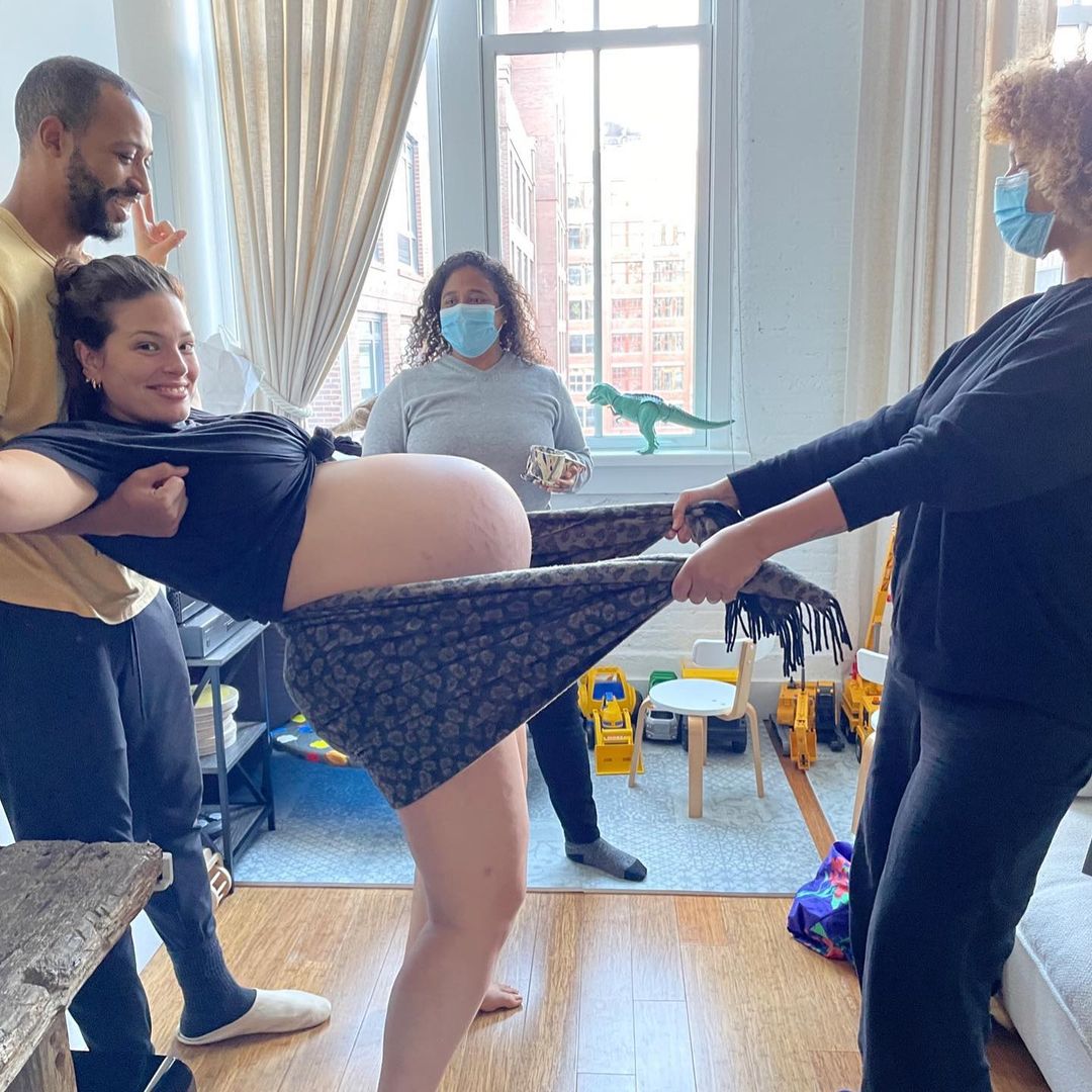 In August 2021, not yet knowing (or revealing?) that she was having twins, Ashley shared this cute pic saying: “About to pop! but not really, we have a min”