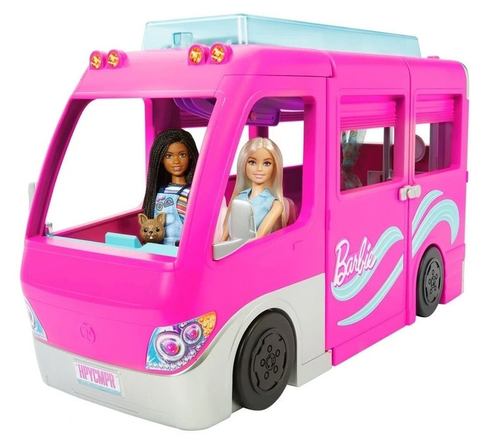 Get the ultimate camping trip underway with the Barbie Dream Camper! Featuring seven play areas, an epic slide and tons of storytelling accessories, this Barbie RV inspires endless outdoor adventures.