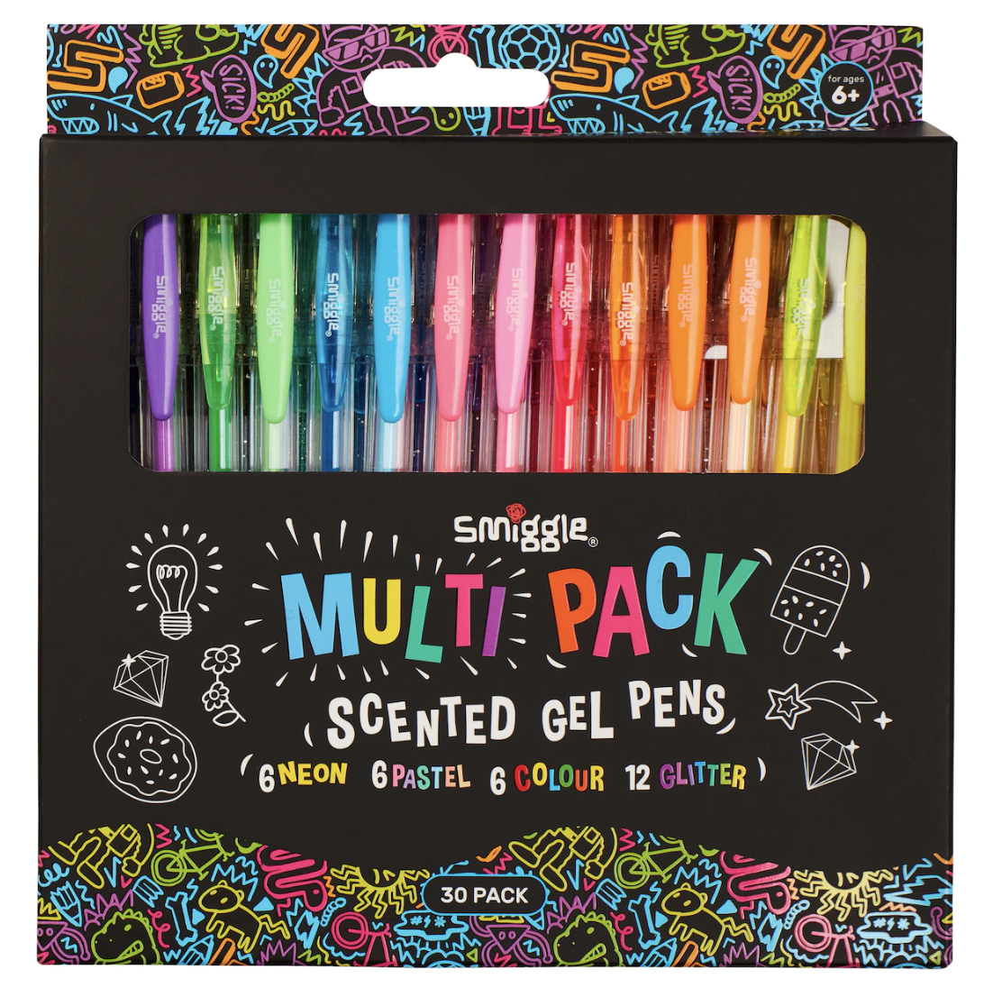 Which Smiggle pen do you like most? Now you don’t have to choose! Grab this fun 30 pack gel pen set. It includes a mix of scented gel pens, glitter pens, neon pens, and pastel pens for the ultimate colouring experience!