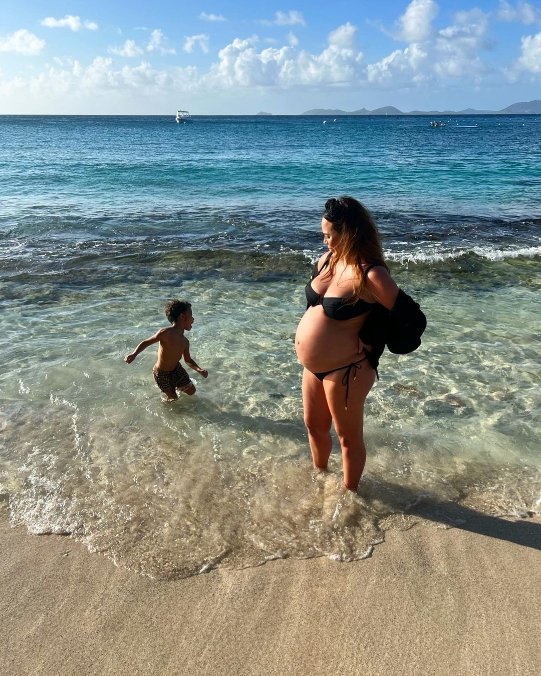 Chrissy takes a cooling dip with her beautiful bump and captions the pic: