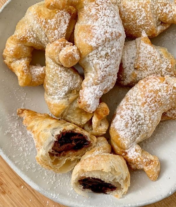 - Twist the pastry ends tightly to remove any gaps and secure the egg inside (this will stop the melted chocolate from oozing out during cooking), then bend edges around, shaping the pastry into a crescent. Repeat with remaining eggs and pastry.