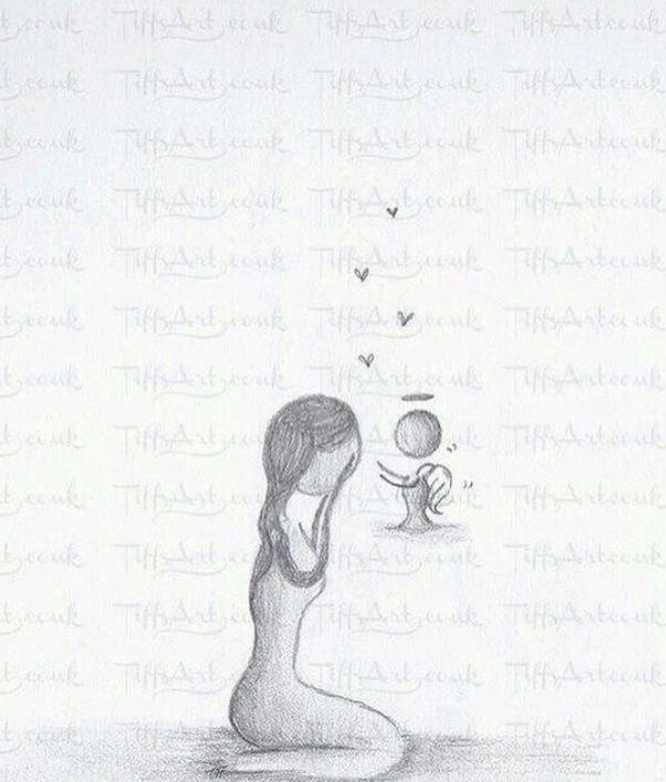 Alongside a black and white drawing of a woman and a small angel, she wrote, “In the name of god, the most merciful the most compassionate. Truly to god we belong and truly to him we shall return.