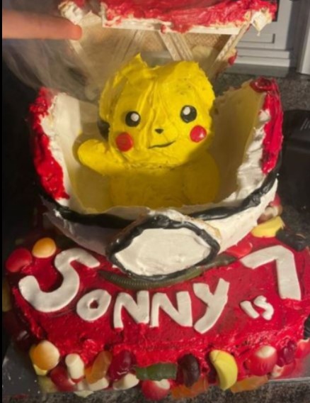 “It’s a Pikachu,” Hamish said of Sonny’s 7th birthday request. “He’s coming out of a Pokeball (that’s a Pokémon thing, not a bowl of brown rice and salmon and cabbage). There is jelly in the Pokeball. There is smoke. It goes “pfffft” when it opens. Pikachu has his hand up for a high five.”