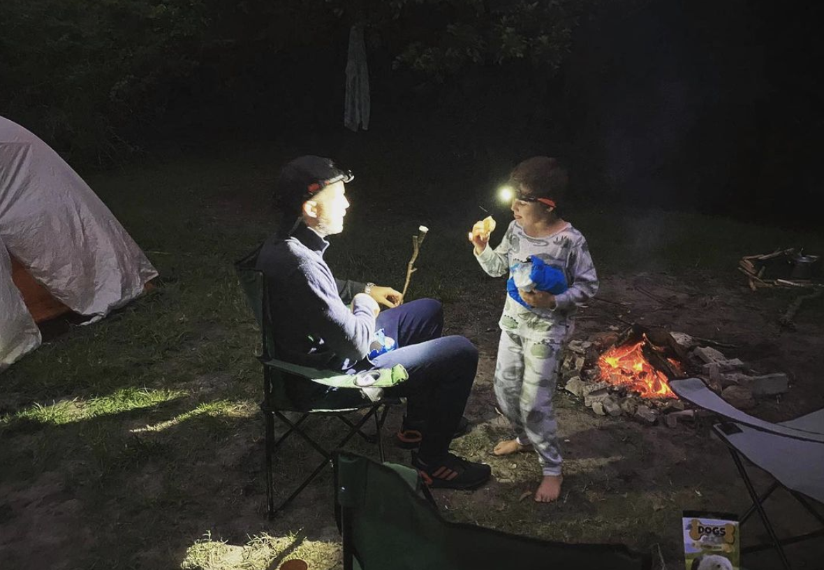 “‘Tent time’ with my boy!”