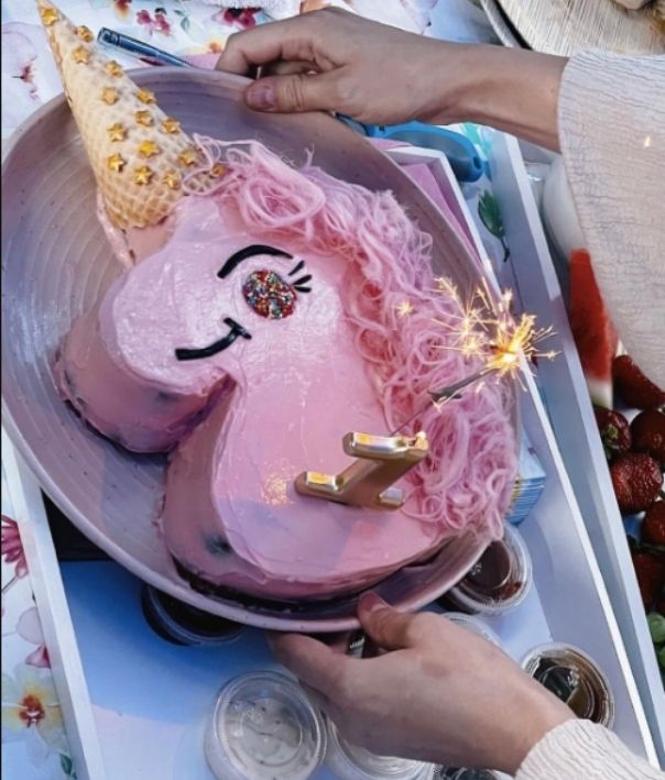 Jesinta used a pink unicorn baking tin to get the shape of the head just right.