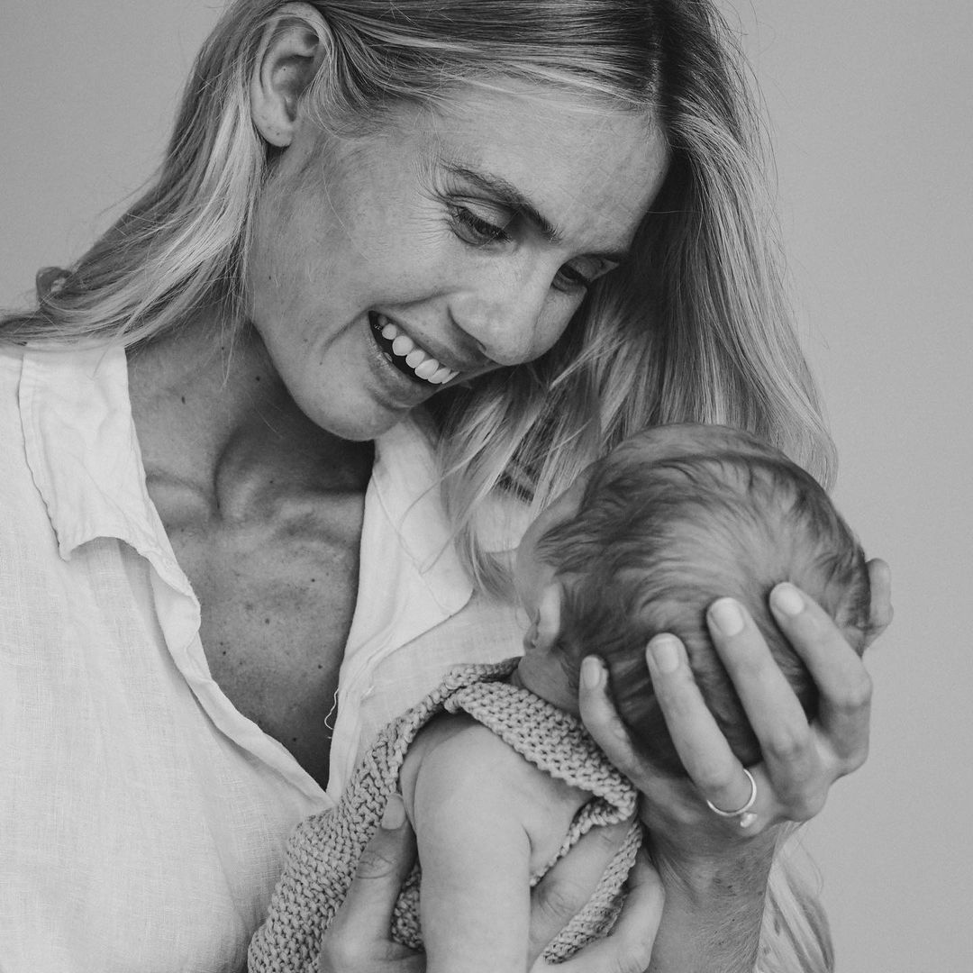 New mum Elyse shared a series of black and white images of the family of three in honour of International Women’s Day.