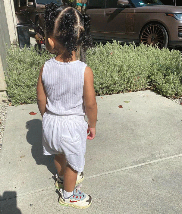 Earrings aside, the toddler looked adorable in a white tank, baggy shorts and pair of Nike trainers.