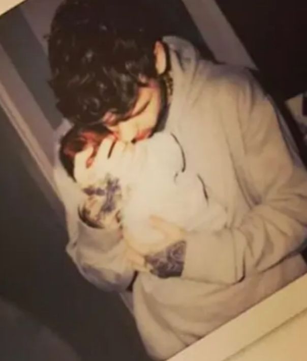 A throwback photo of Liam cuddling one-month-old Bear.