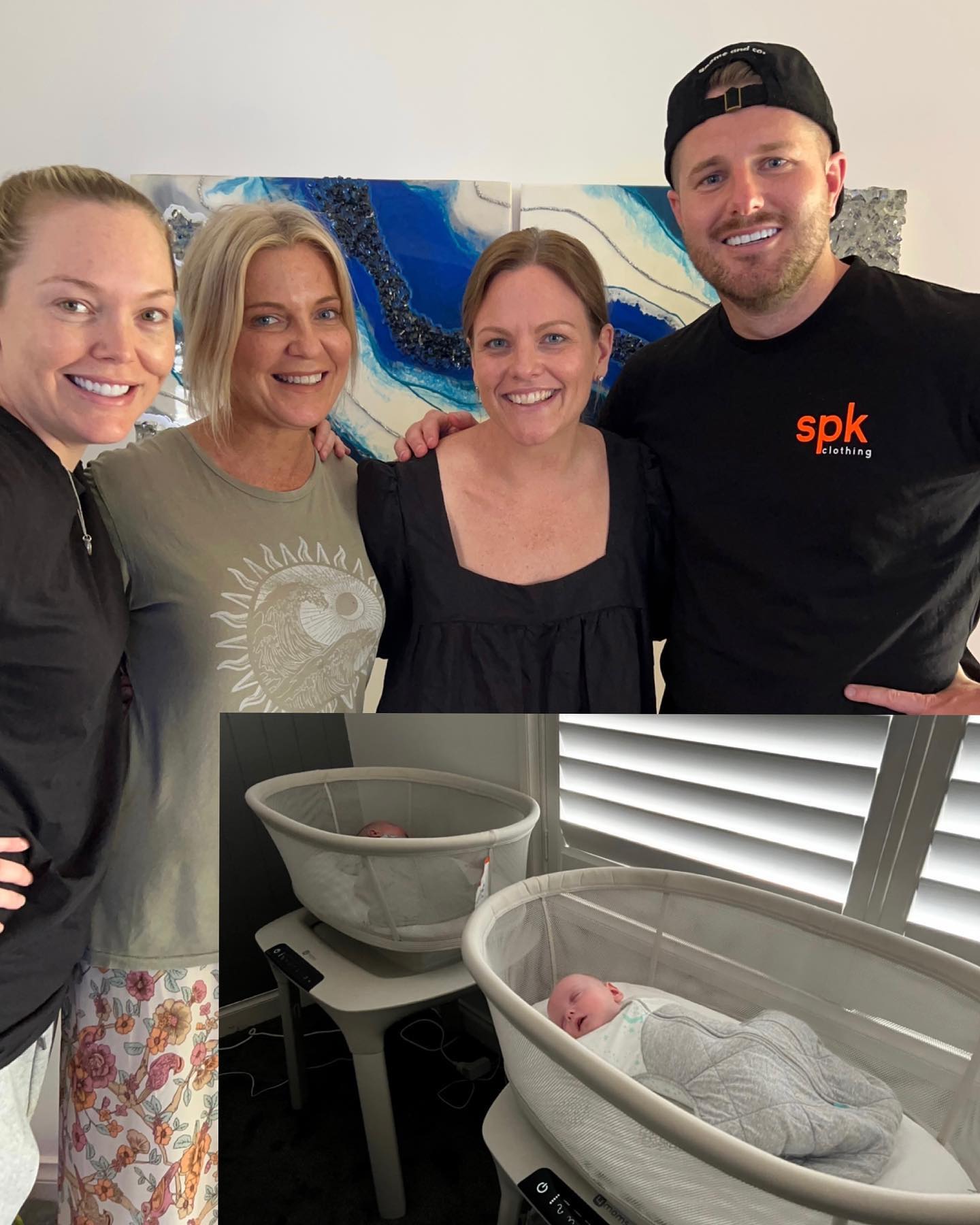 Liss shared a happy photo of her with Bryce and Baby Sleep Consultant Maryanne Sayers and Baby & Child Sleep Expert Steph Gouin, along with an inset photo of the twins in their bassinets, saying “I honestly could not thank these two women enough, they saved us from a really dark place.”