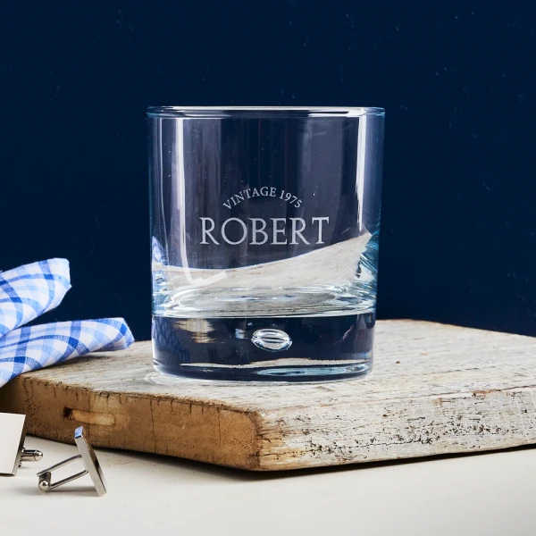 This whisky glass can be personalised your choice of name and special year.