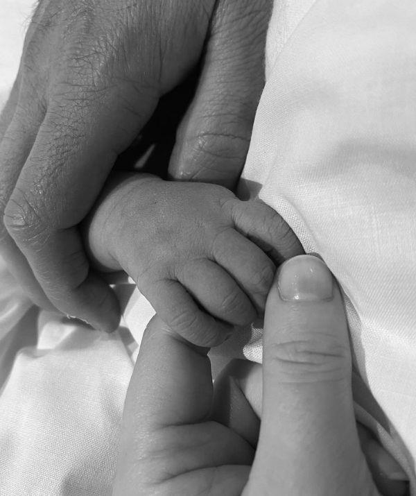 Eugenie also marked the arrival of her first son on her Instagram, sharing a black-and-white photo of her and Jack’s hands grabbing his new-born fingers.