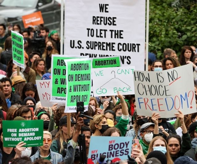 Thousands protest after the U.S. Supreme Court confirms draft ruling overturning abortion rights.