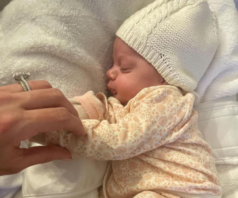 Sam and Snez shared this sweet photo with Harper on the day they were able to finally take her home from hospital.