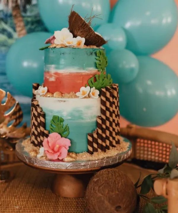 The cake was on brief for the Hawaiian/Moana theme.