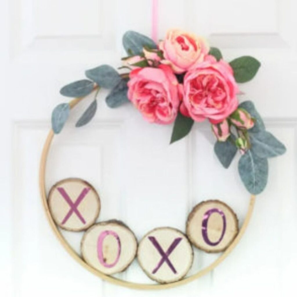We recommend embellishing it with some pretty faux flowers and Valentine’s Day decorations like wooden cut outs, for a simple yet dramatic look.