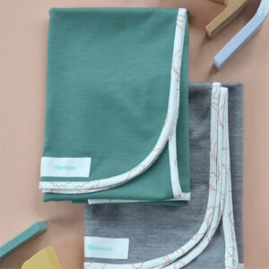 Merineo Merino Wool Baby Blanket – Grey Marle & Olive Green
