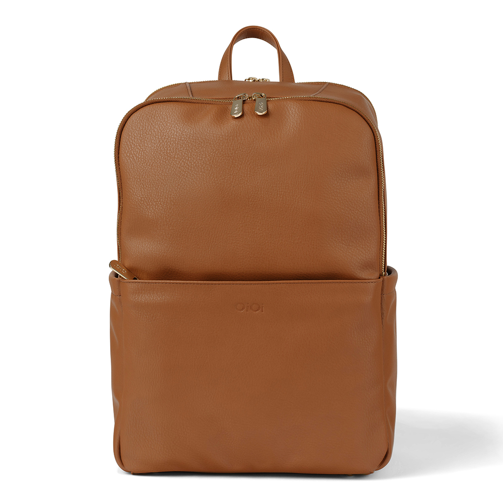 OiOi Faux Leather Tote Triple Compartment Nappy Bag – Tan