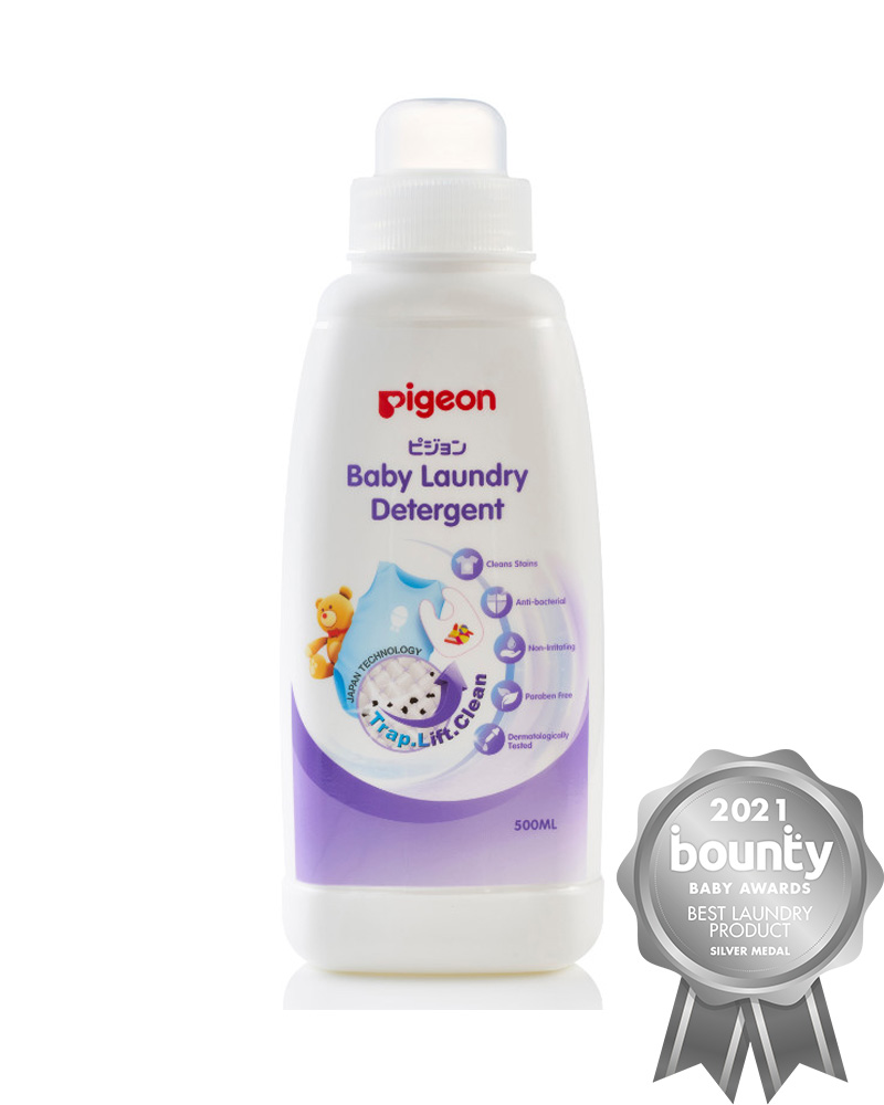 Pigeon Baby Laundry Detergent washes away dirt, stains and everyday mishaps. Contains a unique formulation to trap and lift dirt and then rinse without damaging clothes – Trap, Lift, Clean.