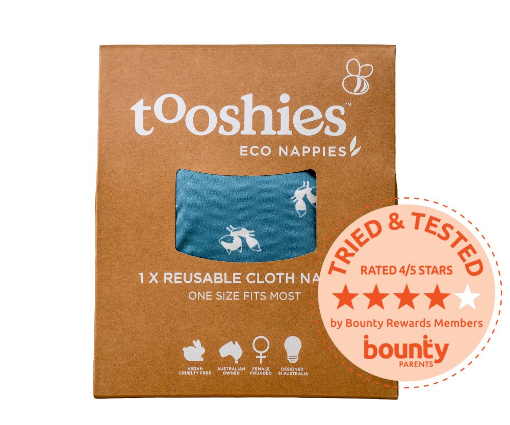Bounty Parents who trialled the tooshies Reusable Cloth Nappies loved the cute designs and the fact that the nappies can be easily adjusted for babies through to toddlers.