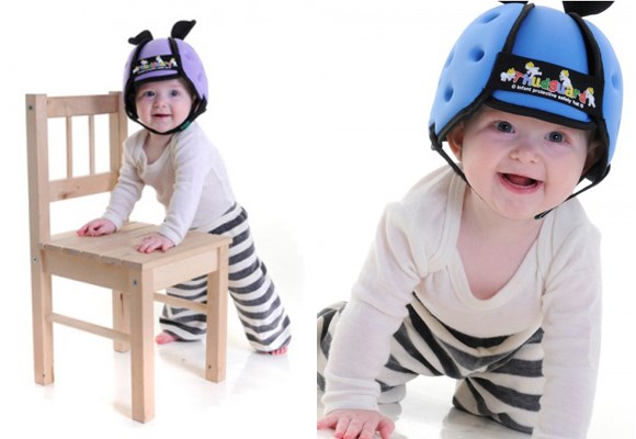 We've all joked about outfitting an unsteady toddler in a helmet, but really? While you're at it, give them kneepads and a full cottonwool suit. If you must, get your Thudguard at babysfirstheadgear.com
