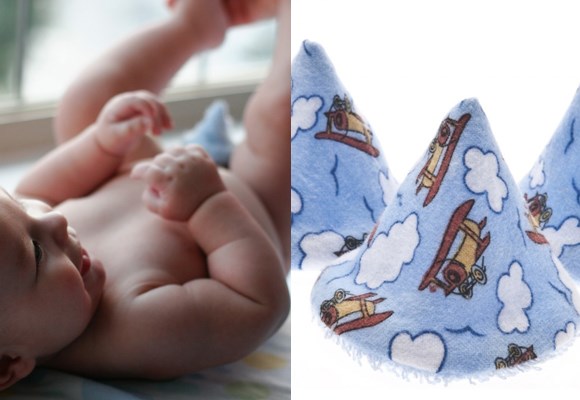 In theory, this is a great invention designed to keep the pee out of your eye when you are changing the little man. In reality, we all know how much kids squirm, making the chances of this cute little cone staying in place pretty slim. A 'golden' shower gift for a pregnant girlfriend from bebabean.com