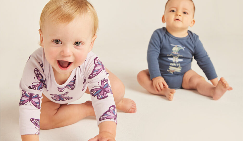 • Snaps at gusset for quick and easy nappy changes