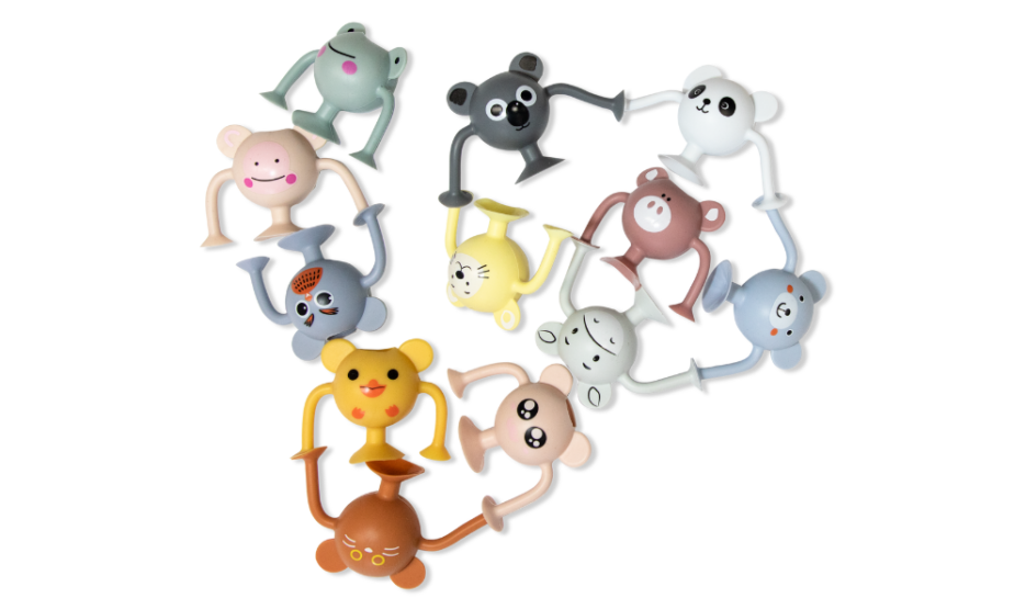 Cherub Baby Bath Toys – Silicone Suction – Entire Zoo Collection is a 12 pack of silicone suction kids bath toys. Connect their hands and feet via the suckers so they can work together to climb walls, hang off crevasses, navigate bath tops, squeeze and squirt and so much more. The Cherub Baby Silicone Kids Bath Toys collection encourages kids to not only use their imagination, but without even knowing it, they are learning about colours, building their fine motor skills through connecting the toys, squeezing them, pouring them, balancing them to place the suction cups together and so on.